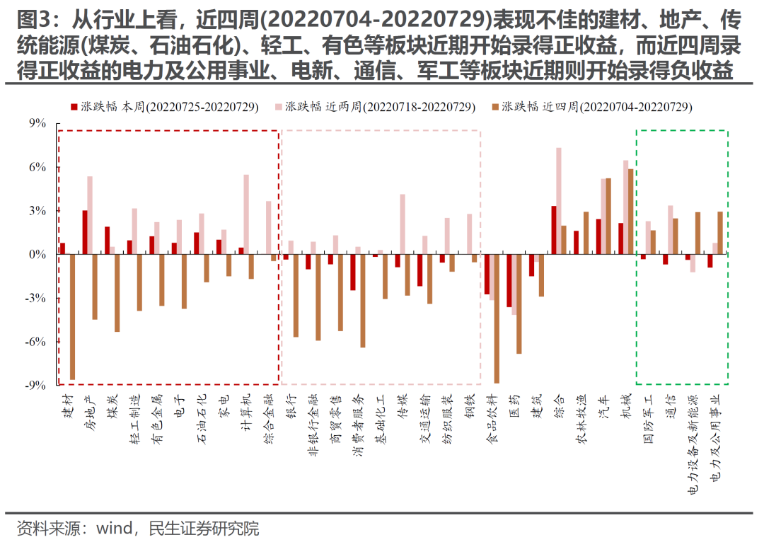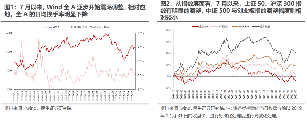 我们在6月29日点评《为中国宏观波动率的回升做好准备》中提到“未来需要关注中国宏观经济波动性的回升,原有市场稳态结构即将被打破”。这一路径正在清晰:7月以来,宏观波动正在放大,市场逐步进入调整,投资者交易结构正逐步松动。自7月以来,Wind全A逐渐步入震荡调整格局,指数层面则呈现了明显的分化:上证50、沪深300指数有明显的调整,中证500、创业板指的调整幅度则相对较小。行业层面,我们同样看到了结构在逐步松动:前期强势赛道的上行动能在逐步减弱,而部分前期弱势板块则开始逐步占优。具体而言,一方面7月以来整体表现不佳的建材、地产、传统能源(煤炭、石油石化)、轻工、有色等板块近期开始录得正收益;另一方面,7月以来表现居前的电力及公用事业、电新、通信、军工等板块近期则开始录得负收益。值得一提的是,7月以来食品饮料、医药、建筑等板块始终表现不佳。从流动性视角来看,如果我们以单位交易热度(周日均成交额/自由流通市值)带来的市场涨跌幅变动幅度作为流动性度量的指标发现:7月以来,单位交易热度带动市场涨跌幅变动幅度的明显下降。相似的,电新、汽车等板块呈现了同样的特征。这同样指示着市场以及前期强势板块上行动能的走弱。如果结合投资者行为来看我们发现:7月以来,无论是各类投资者、还是趋势交易者内部,整体分歧在明显扩大,这意味的是投资者原有共识的明显松动。7月以来,部分投资者可能已经开始逐步寻找新的方向,而部分投资者其实仍然在押注中国经济的低波动,抱团于和经济弱相关(并不免疫)的高增长部门。主流投资者押注经济预期低波动的基础正是政策主线意图:“压低宏观波动率”。然而,需要提醒投资者的是:政策意图低波动——宏观经济低波动——市场认知经济低波动之间并不画上等号。可以类比的是:2021年“碳中和”以来,政策本身意图是在传统能源稳定时加快新能源发展同时减少碳排放,但是中间由于经济复杂系统运行的规律,能耗双控政策导致了能源价格飙涨、限电停产等阶段性的波动,而市场定价也因此出现了大幅波动。7月28日政治局会议在“求稳”的定调下,政策并未超预期。在“着力稳就业稳物价”的目标下,经济整体的修复空间可能相对有限。细分领域方面,算“政治账”等表述意味着消费恢复可能同样有限;另外,我们在半年策略《暴雨惊雷》提到:房地产作为资本品,像预期中的保持“低波动”难度较大,一是2021年出险房企的风险并未化解,只是“搁置”。而2022年上半年也是房地产行业债务到期高峰,随着时间流逝,风险在积累,如果没有有力的反弹,风险将逐渐暴露;二是期房的交付风险与房价下降预期都可能促使居民再次进入资产负债表收缩状态;三是房地产投资不足,将使地方政府土地财政收入降低,而现在求稳政策本身的实施又依赖于地方政府。最新一期制造业PMI再次回落至荣枯线以下,疫情后的爬坡修复靠近尾声,疫情以前的问题将重回投资者的视野。未来也许中国经济最终波澜不惊,但是过程中市场定价预期也会推升市场波动。在中国动能趋缓后,海外因素此时正在聚集。前期投资者认为的衰退交易中,欧洲能源危机是主线。对于海外而言,“美国自由港爆炸”、“拜登访问沙特”等事件实际上推动了6月8日以来的全球市场的运行主线,而这背后恰是欧洲能源危机的演绎: