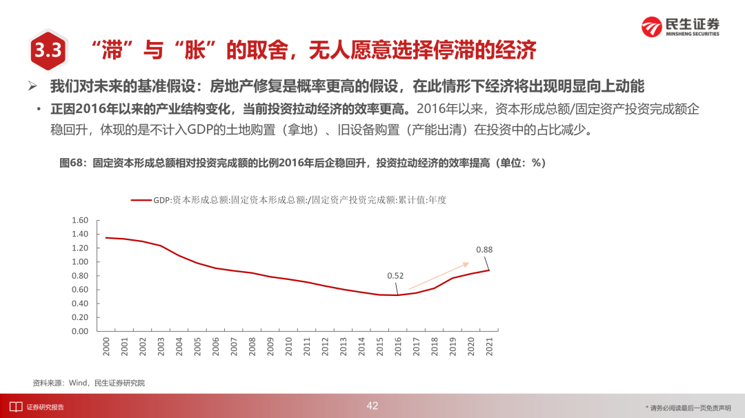 制造业与耐用品消费走弱与良好的就业和服务消费需求将让美国进入标准的滞胀状态,而对国内的影响将从“成本下降”过渡到“出口需求下滑”与“能源侧输入性通胀回升”。当下基于疫情的修复动能可能靠近尾声,而房地产的有限修复将不足以扭转当下的债务问题。地产要么出现销售预期和房价预期的扭转,杠杆率重新上行,要么进入漫长的消耗之路,对中国经济形成持续的下拉力量。房地产重新拉动经济,配合中央政府主导的基建投资计划,才能为先进制造业的转型带来更多终端需求。当然,如果投资者认为应该以基建代替房地产,那么其更短的产业链将带来更大的上游通胀压力。并非我们认为中国经济发展只能依靠房地产,而是此刻旧世界的平稳发展才能为转型创造广阔空间。中国居民、企业、地方政府和中央政府之间的杠杆率正在交替之中,这本身也是宏观波动率上升的来源。
