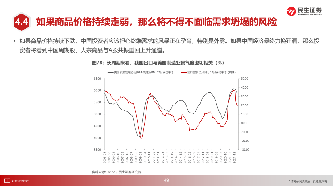 在历史上,中美商品的短期波动其实与股市是一致的,但2021年Q3开始,投资者开始认为“天下苦周期久矣”,其核心原因正是相对稀缺的大宗商品产能,让中美经济周期错位过程中对中国形成了持续性的通胀压力。但是,如果商品价格持续下跌,中国投资者应该担心终端需求的风暴正在孕育,特别是外需。如果中国经济最终力挽狂澜,那么投资者将看到中国周期股、大宗商品与A股共振重回上升通道。当下并非所有策略都是持有并买入,2022年下半年,市场的预期可能会在滞胀、衰退与复苏之间反复摇摆,而中国经济成为了未来最大的变数。在当下来看,能源的下跌本身并不能被供需平衡表所解释,其价格波动的来源正是宏观预期驱动下的资金流动,如果能源价格上升——通胀上行——货币紧缩加速——经济衰退——能源价格下跌的循环成立,那么系统在存在正向机制的同时,也就会形成负反馈机制,让能源价格长期维持高位。当下金属的低库存仍然让其对任何的需求变化存在较高敏感度。中国在需求低位时已经开启了CPI上行之路,后续通胀是否扩散也会是市场重要关注点。