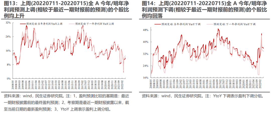 4.1全A今年/明年净利润预测上调组合占比均上升,而今年/明年净利润预测下调组合占比则均回落。幅度上,分析师仍在上调全A今年/明年的净利润预测