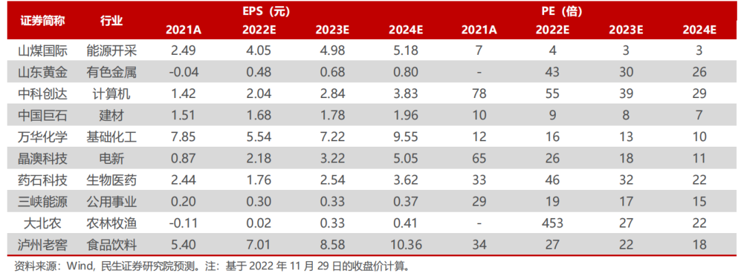 民生12月金股推荐