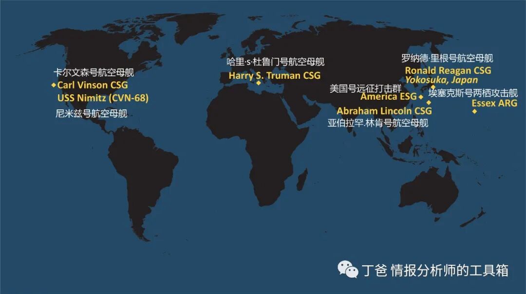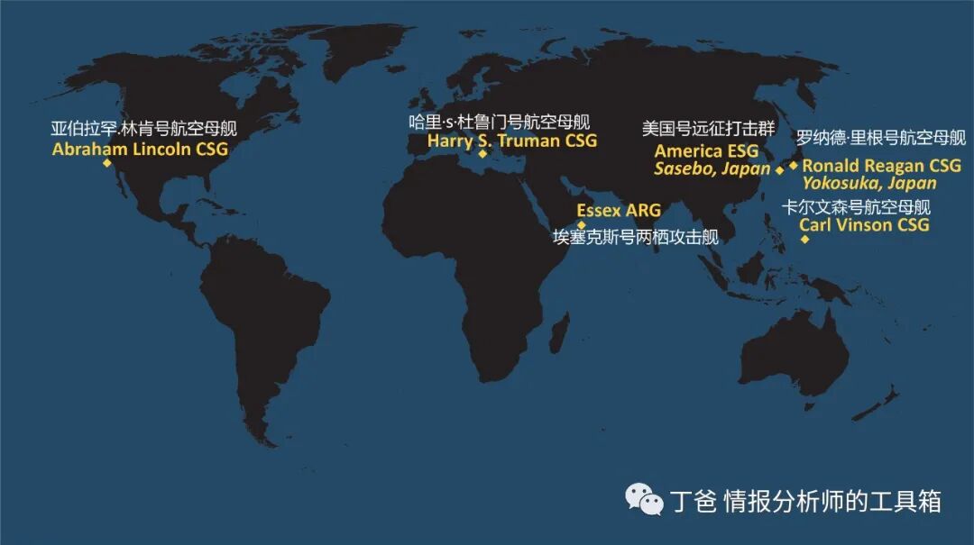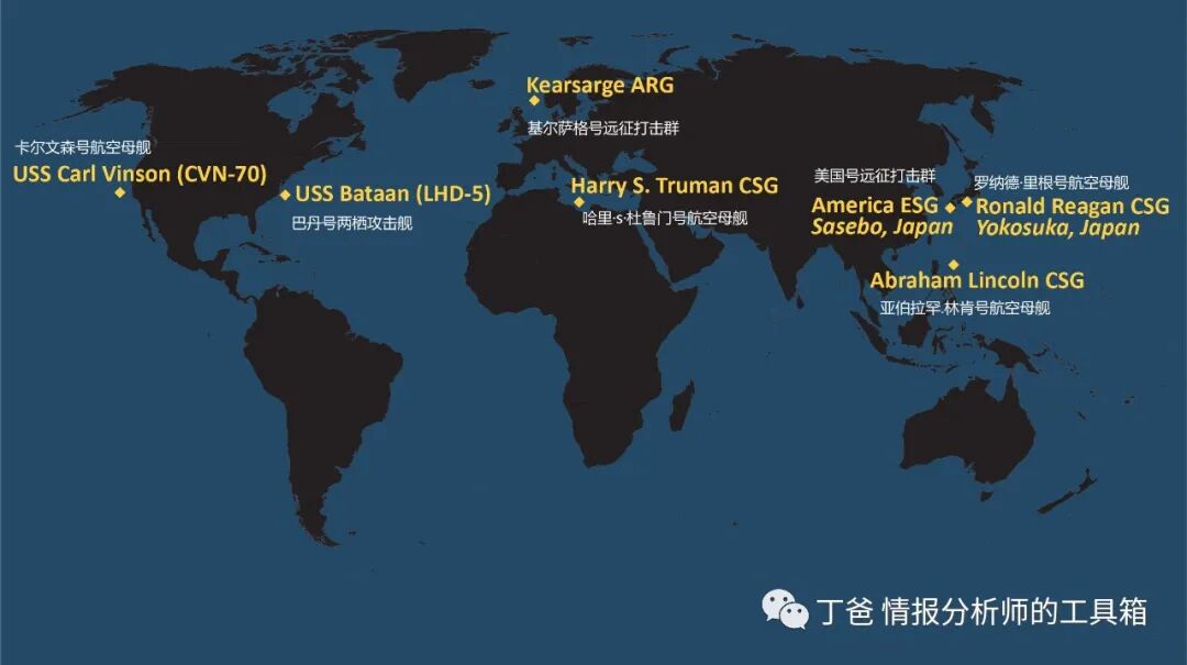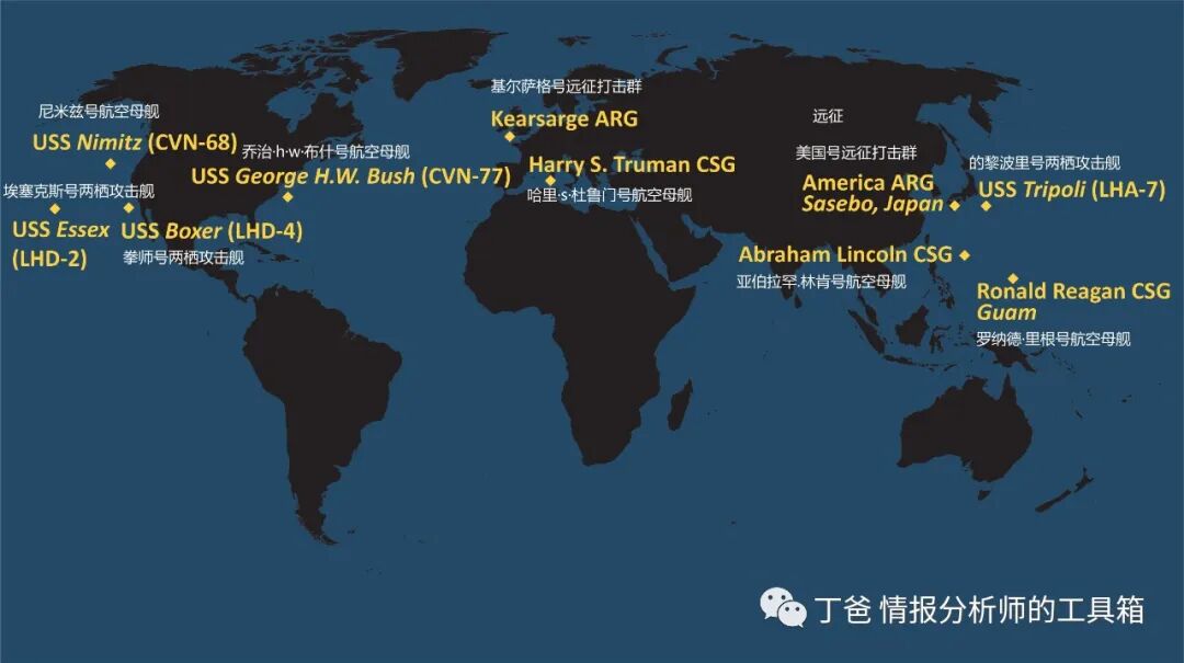 2022年1月3日,美国航母和远征战斗舰队部署位置: