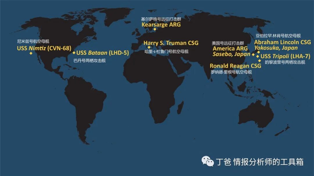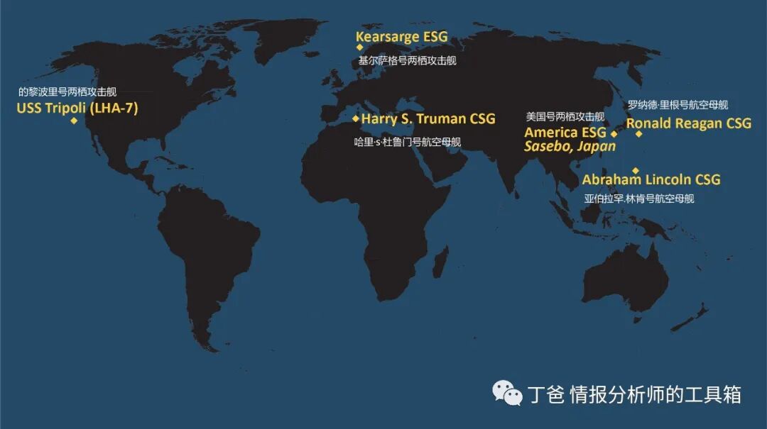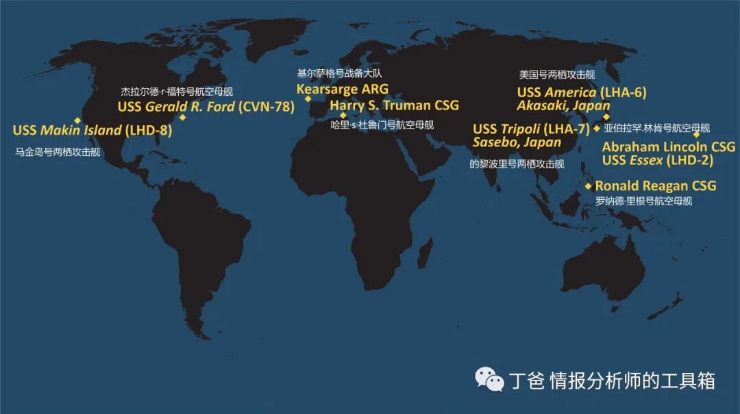 2022年7月11日,美国航母和远征战斗舰队部署位置: