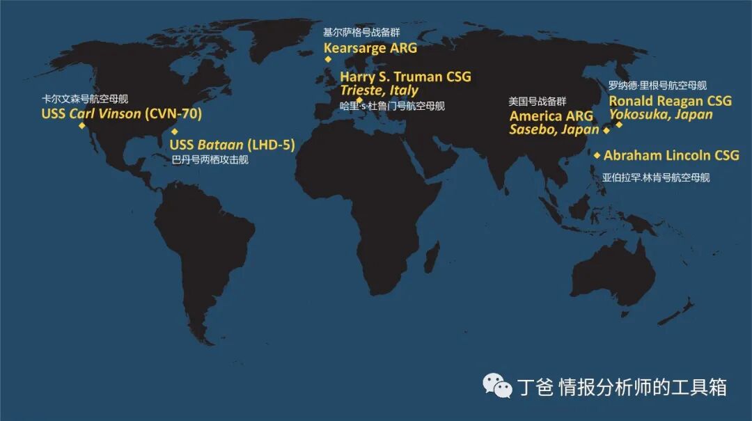 2022年4月4日,美国航母和远征战斗舰队部署位置:
