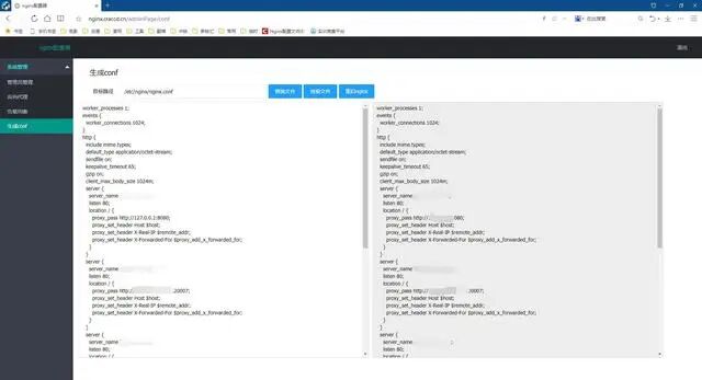 PS:nginx本身功能复杂,本项目并不能涵盖nginx所有功能,只能配置常用功能,更高级的功能配置仍然需要在最终生成的nginx.conf中进行手动编写哦~