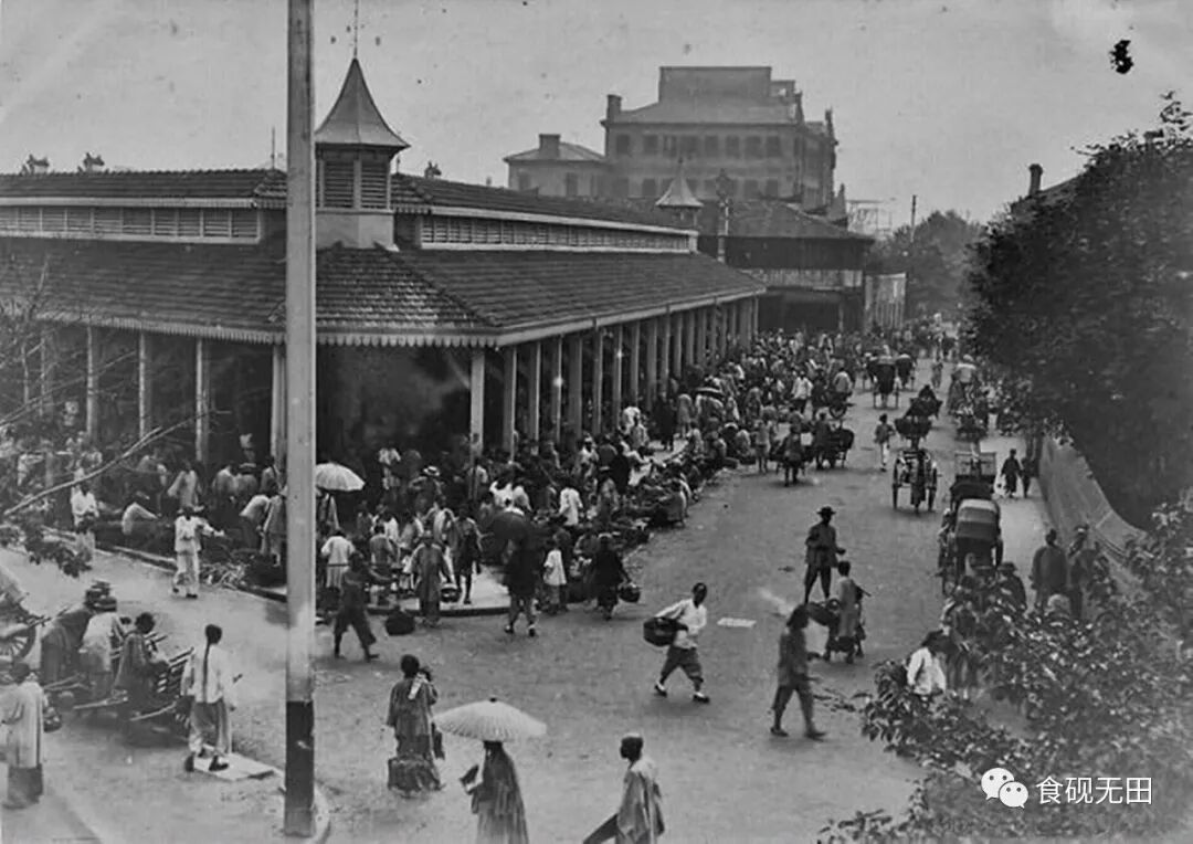 图326:1920年代中期,吴淞路口东望第三代三角地菜场,左侧为汉璧礼路(汉阳路),右侧为文监师路(塘沽路)、老虹口巡捕房北立面