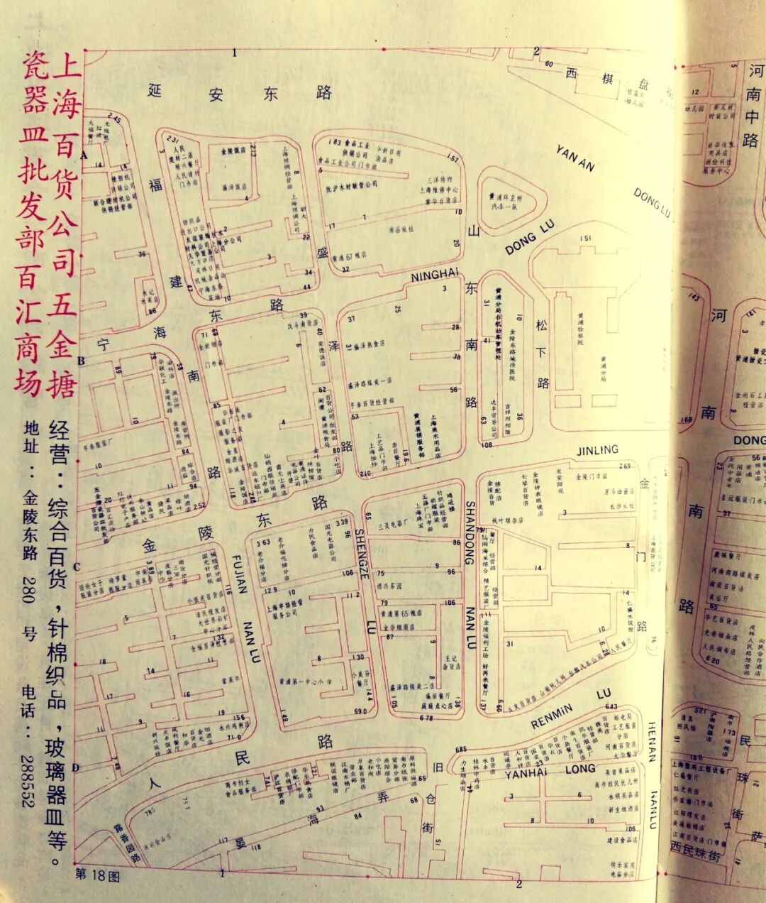 题图2:人民路、河南南路、永胜路等(1989年版《上海商用地图》图18-2)