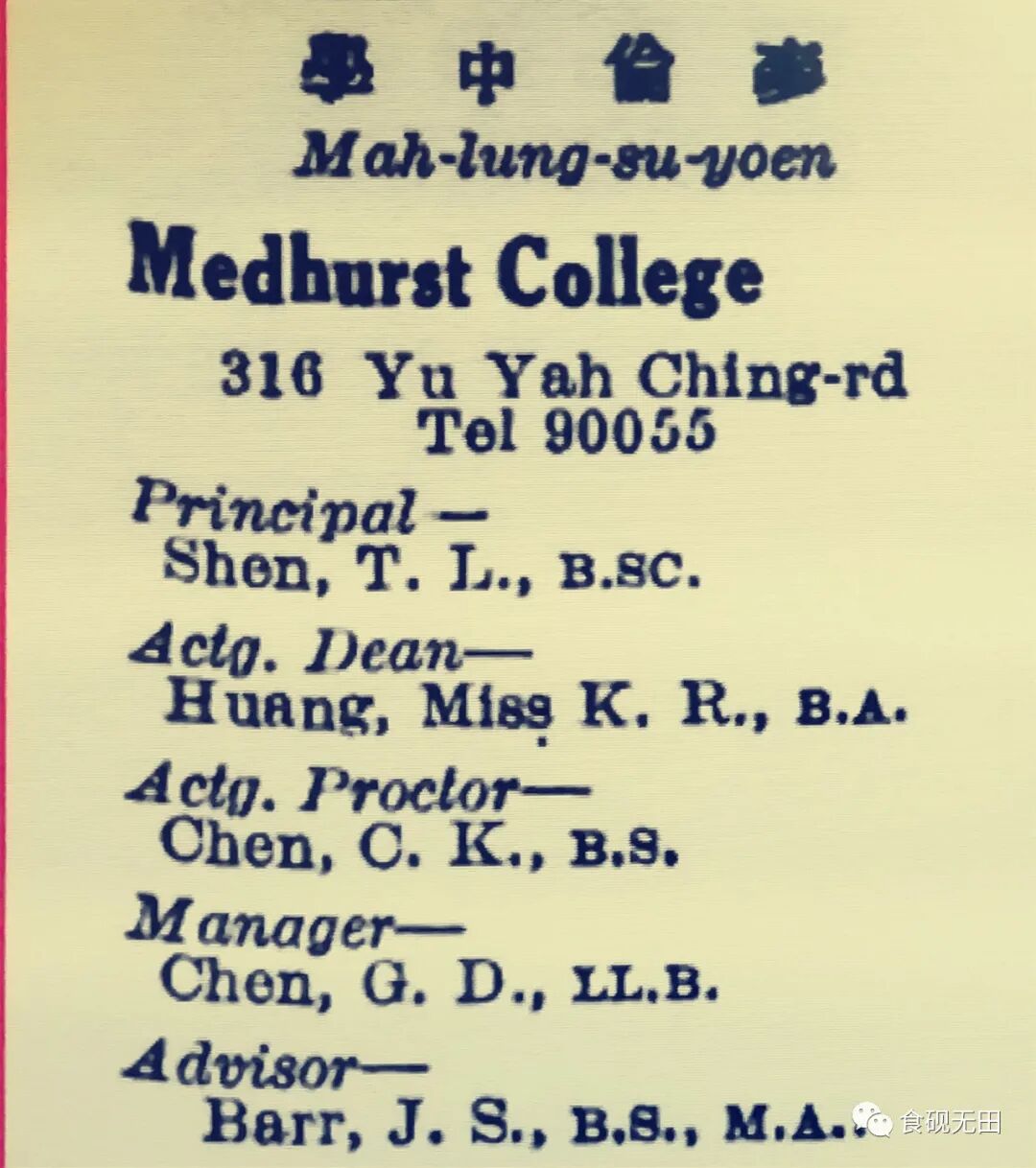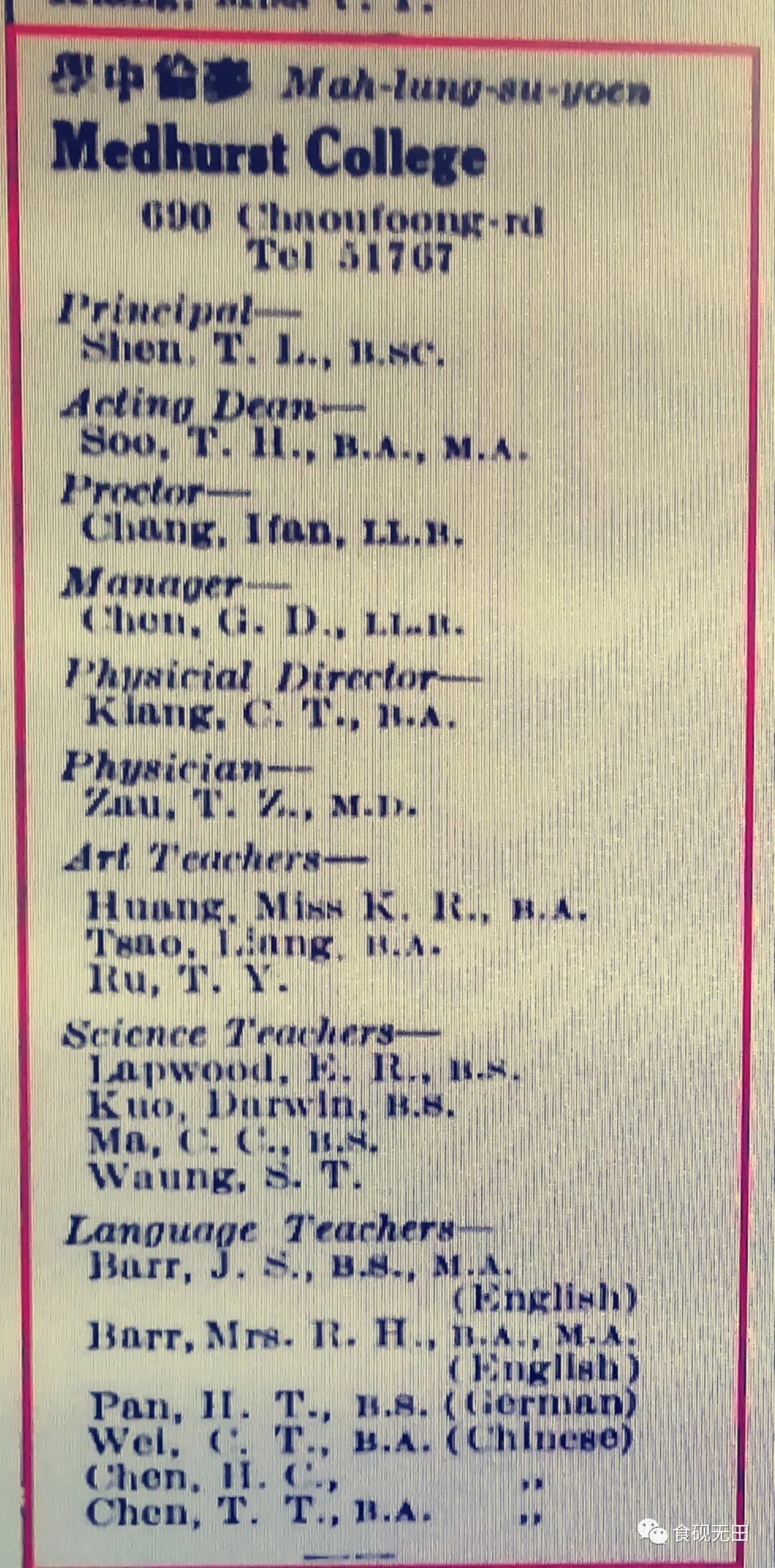 图458-3:麦伦中学,虞洽卿路316号(The North China Desk Hong List 1938年 1 月 [0084 版])