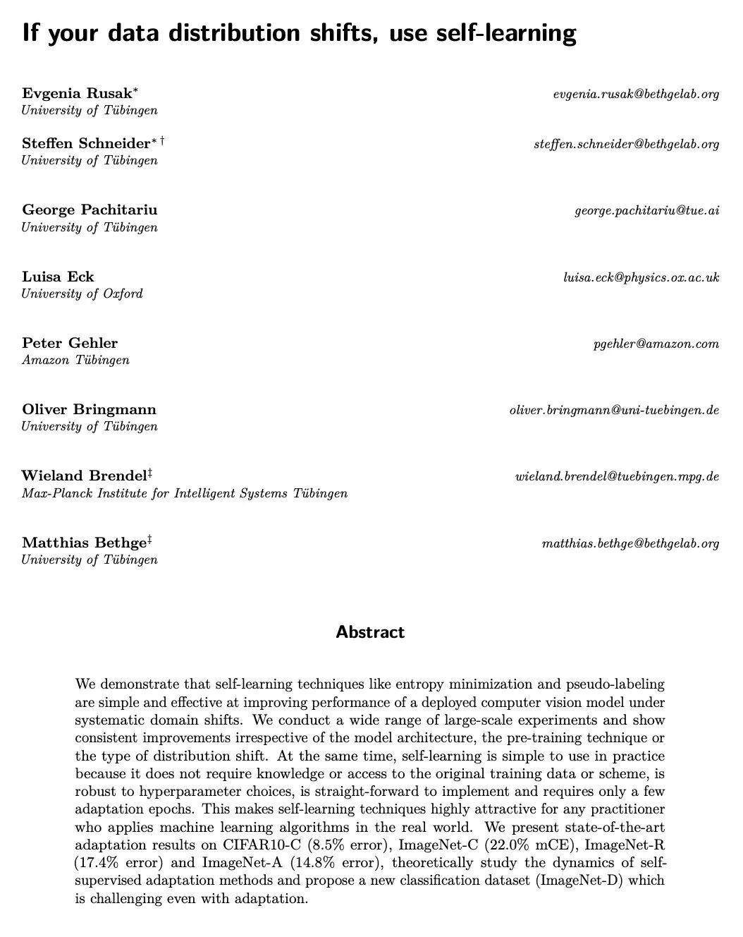 E Rusak, S Schneider, G Pachitariu, L Eck, P Gehler, O Bringmann, W Brendel, M Bethge