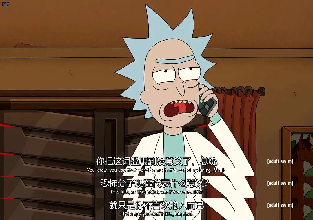 但是在本季中,政治讽喻的“玩梗”成为了主流。曾经的瑞克根本不care这些人世间的喧嚣,根本不会把这些暴力机器和规则放在眼里,因为他早已经参透了时间、宇宙和万物,只需要关注于自己的“存在”而鲜关注价值。