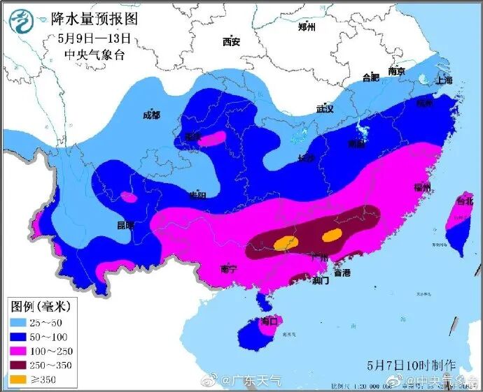 5月11日:暴雨到大暴雨,局部特大暴雨,气温23~25℃;