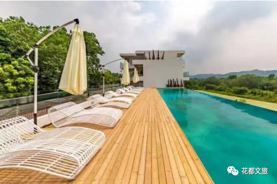 屋顶有无边泳池,面向竹洞湖。水挺干净,没有味道,泳池边旁绽放着龙眼花,拍照很美;