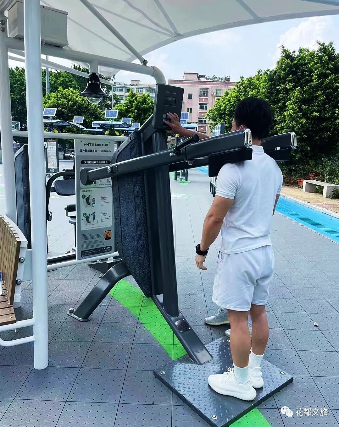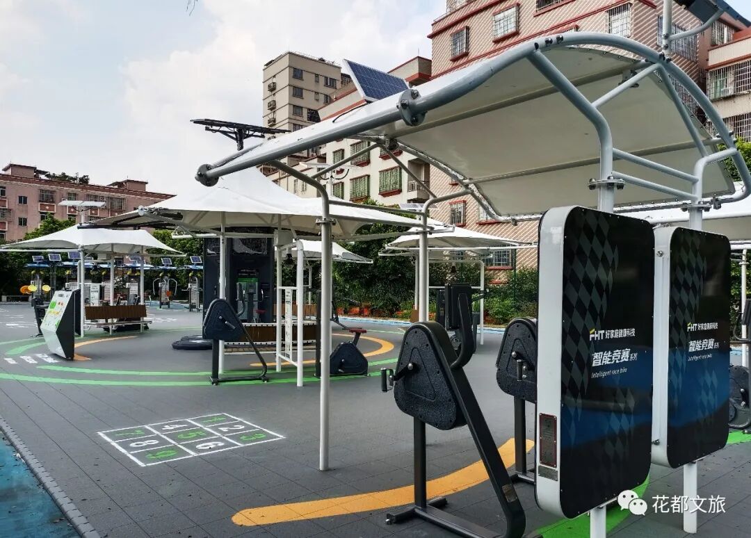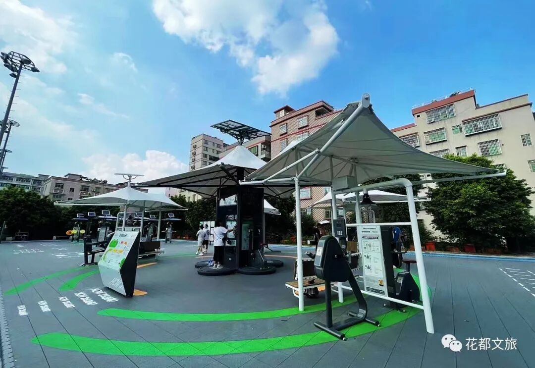 此外,整个室外智能健身房还配备了燕尾遮阳篷,集遮阳、休憩、供电、照明于一体,其自带的太阳能电池、储电箱可实现太阳能和运动发电、蓄电,满足夜晚自动照明,延长器材使用时间,更加节能环保。来源:花都文旅