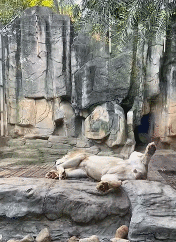 不一会,雄狮就躺一块腻歪去了。