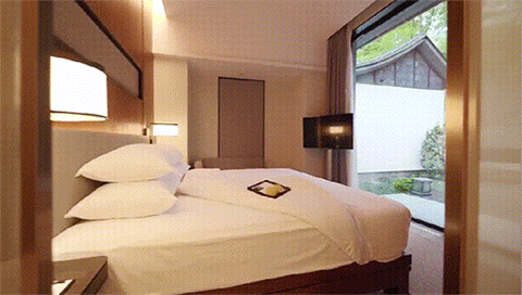 依山傍水而建的52间别墅式的客房,散布在林间,大床正对着一扇落地窗,窗外的景致毫无保留地为情人节增添几分浪漫。