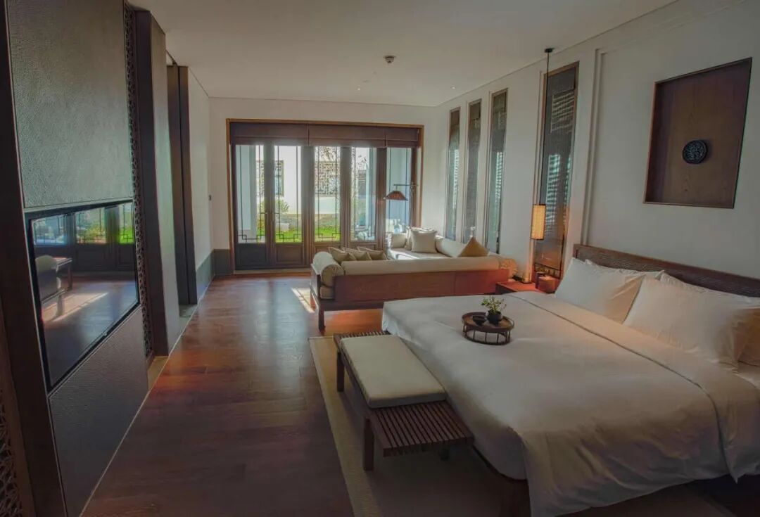 古香古色的环境让人倍感舒适,103间私密庭院及山景客房,其中最大的套房约 260平米,同时也配备有餐厅、泳池、健身房、SPA与书吧。