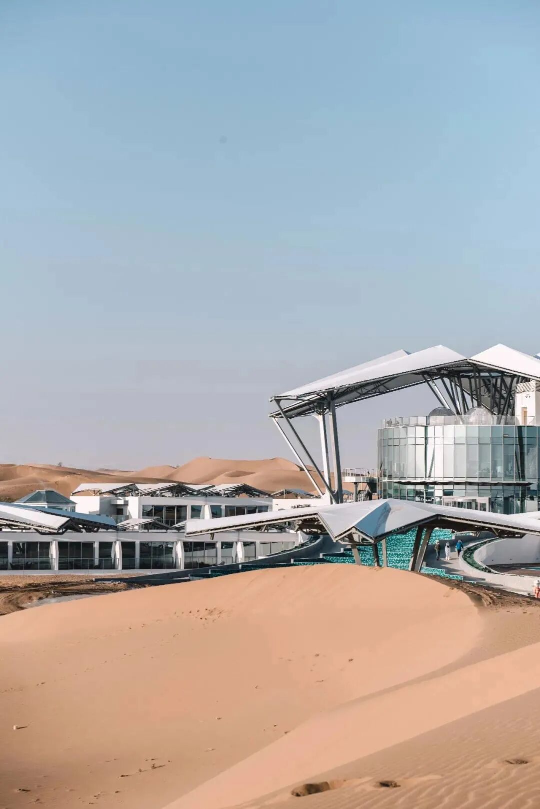 仿佛穿越到了《星球大战》之中,银色钢筋与黄色沙子交织竟能配合得如此默契,散发着未来感的孤独。
