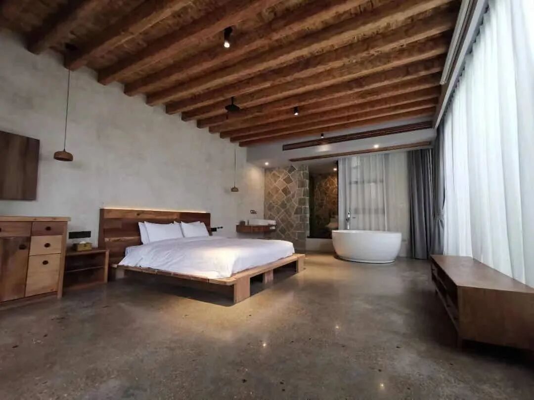 每间客房的房型都是独一无二,面积约有50㎡,临山的房型有一个屋顶花园,在花园里可以俯瞰全山。