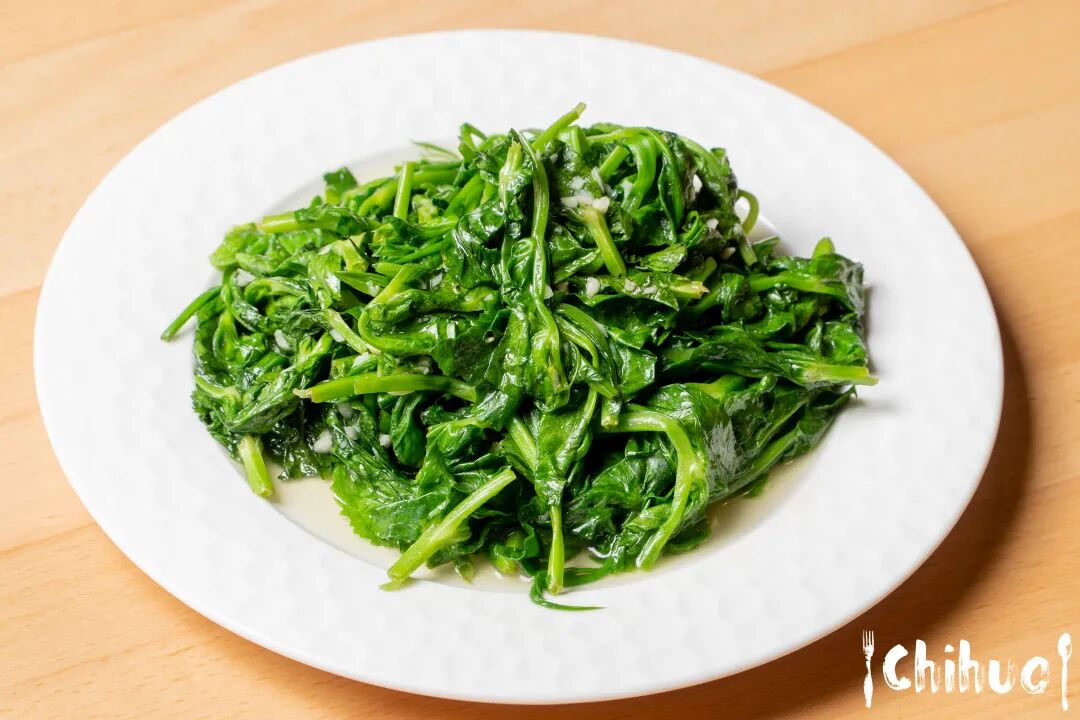 大鱼大肉完,不来点蔬菜说不过去呀!蒜蓉炒豆苗,一上来就清香扑鼻,少油少盐的烹饪方式,让人吃起来很舒服,极大程度还原了原本的蒜香与菜香。在这两者的交织下,一筷子下去,品尝满嘴盛夏🌿