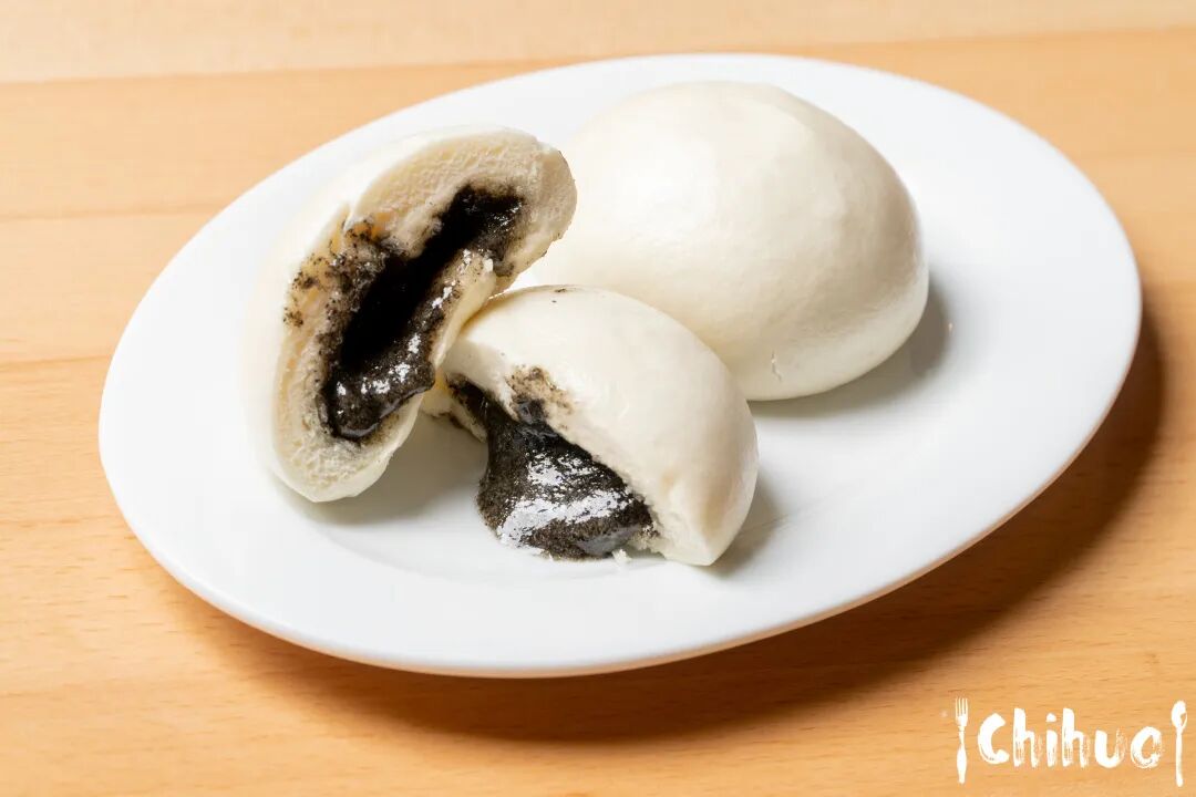 爆浆芝麻包真的做到了包如其名,掰开包子,滚烫的黑芝麻馅儿顺着皮流淌下来,芝麻香在嘴里瞬间爆开。包子皮是外层Q弹,内部软糯,趁热吃起来更香~