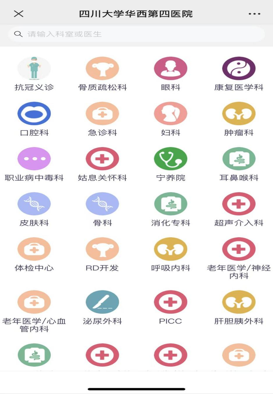 搜索并关注我院公众号“华西第四医院”,点击在线服务,打开微官网。