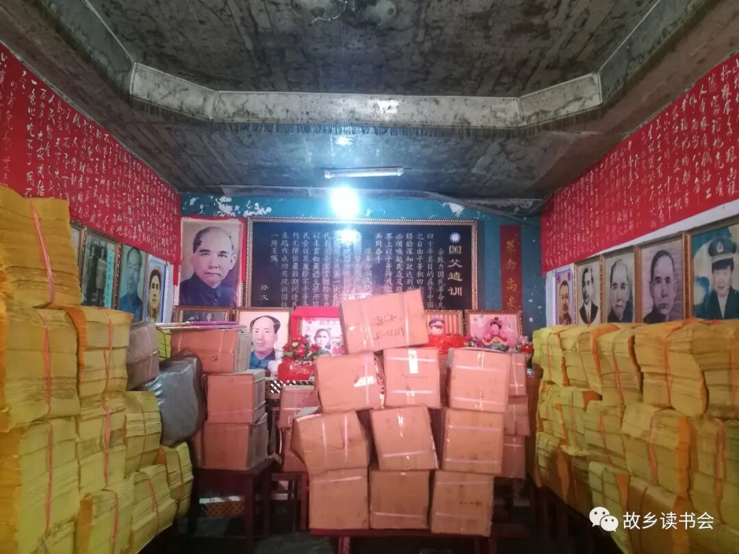 走过一段约百米的丛林小道,就到了七姐公园。原来公园也在黄茅尖山麓,只是与尖山寺位于不同方向,而森林茂盛,所以互相看不见。公园位于腰村村山岭下组后山的一处山谷,园四周有围墙,白墙青瓦,八字园门,两根蹯龙柱撑起两层飞檐,上下层各有浮雕文字,上曰“七姐公园”,下曰“仙宫”。入其内,别有洞天。左侧有一栋民居样的单层瓦房,迎面墙正中是“国父遗训”,旁边是孙中山大幅画像,两旁墙壁上方,一线张贴孙中山、蒋介石、毛泽东的带框画像,满屋堆码着捆好的纸钱。房子大门斜对面的树下,两个老妇人正坐着剥竹笋。园子里还有三五个人在干活。