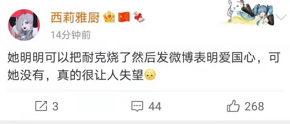 一个喜欢运动的女孩,爱好收藏nike鞋本就是无可厚非的事,怎么就扯到了“跪族”上了?“跪族”能站上奥运的领奖台,你们这些本来站着的呢?除了躲在键盘后面猥猥琐琐的伪装正义,还能干嘛?