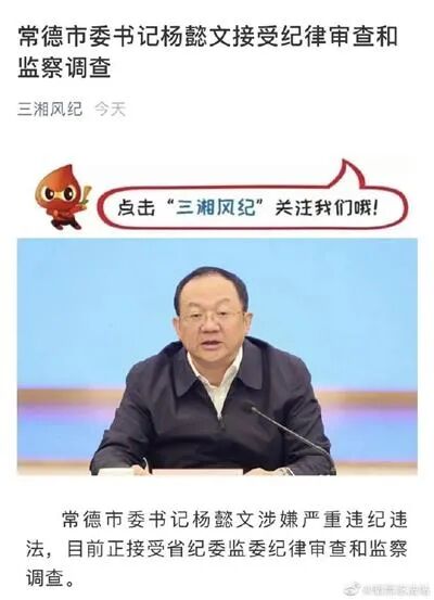 湖南“浏河之声”刊发了《从会场被带走的市委书记》,披露了杨懿文落马时的部分细节,写得特有意思: