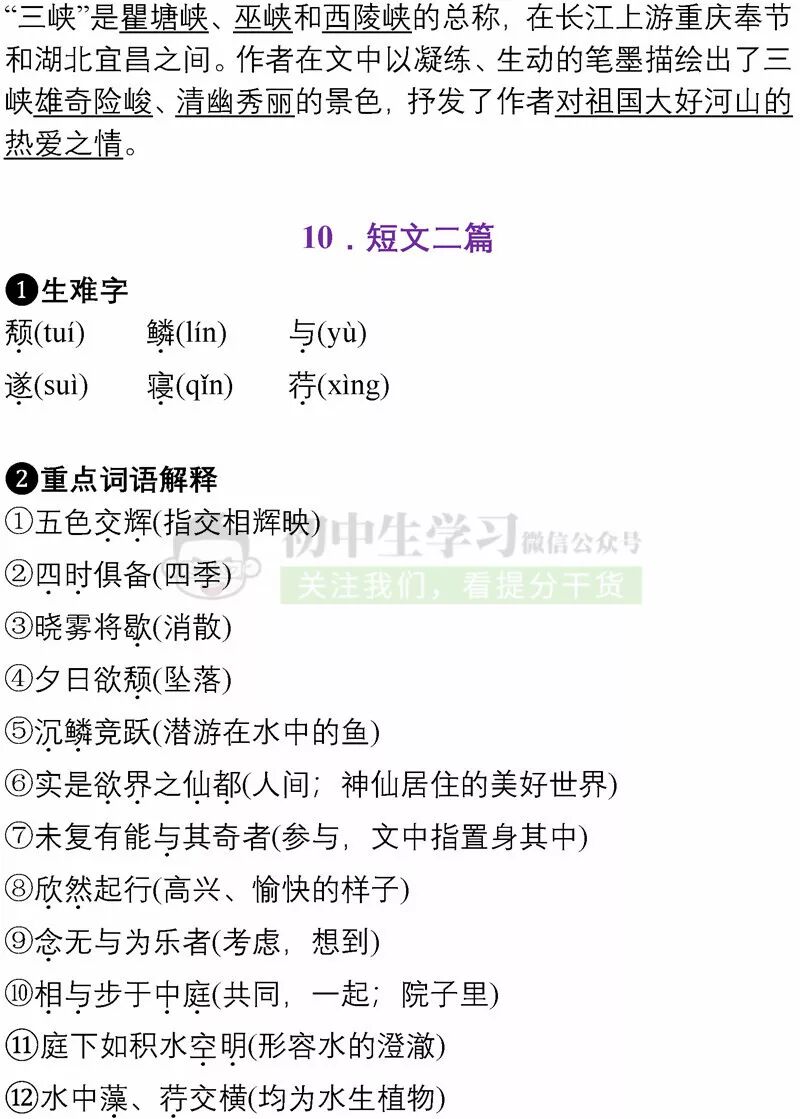 今天送给大家的是八年级语文(部编版)上册期中考试重点知识清单!