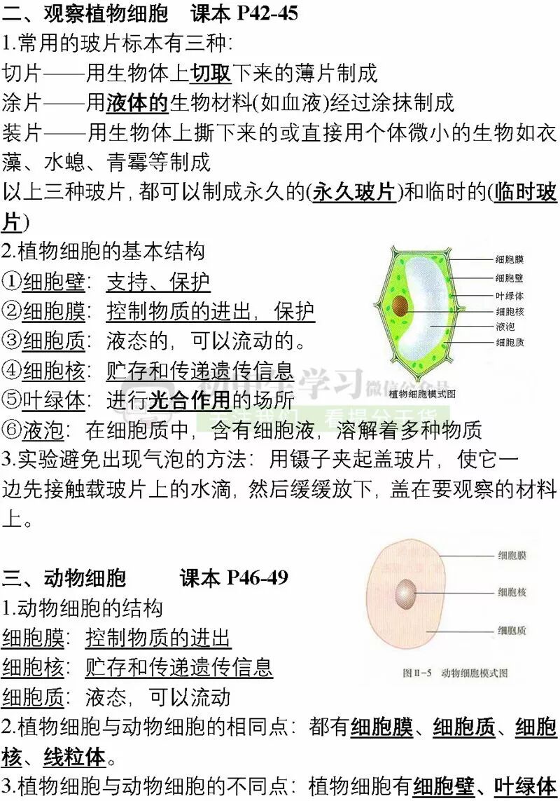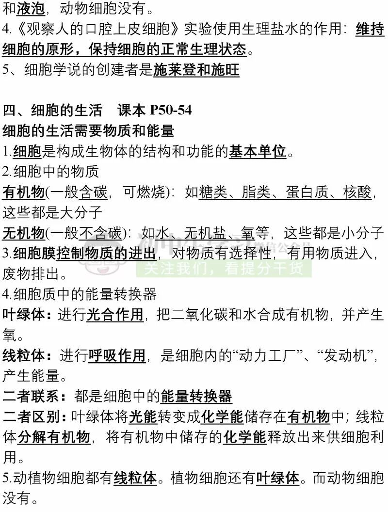 七年级生物上学期期中考试重点知识清单!