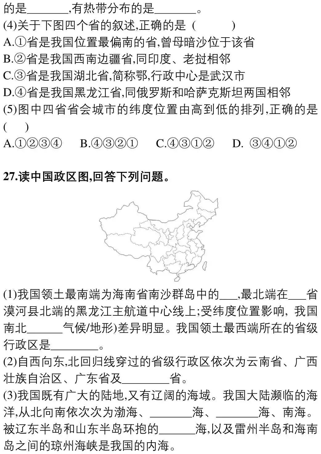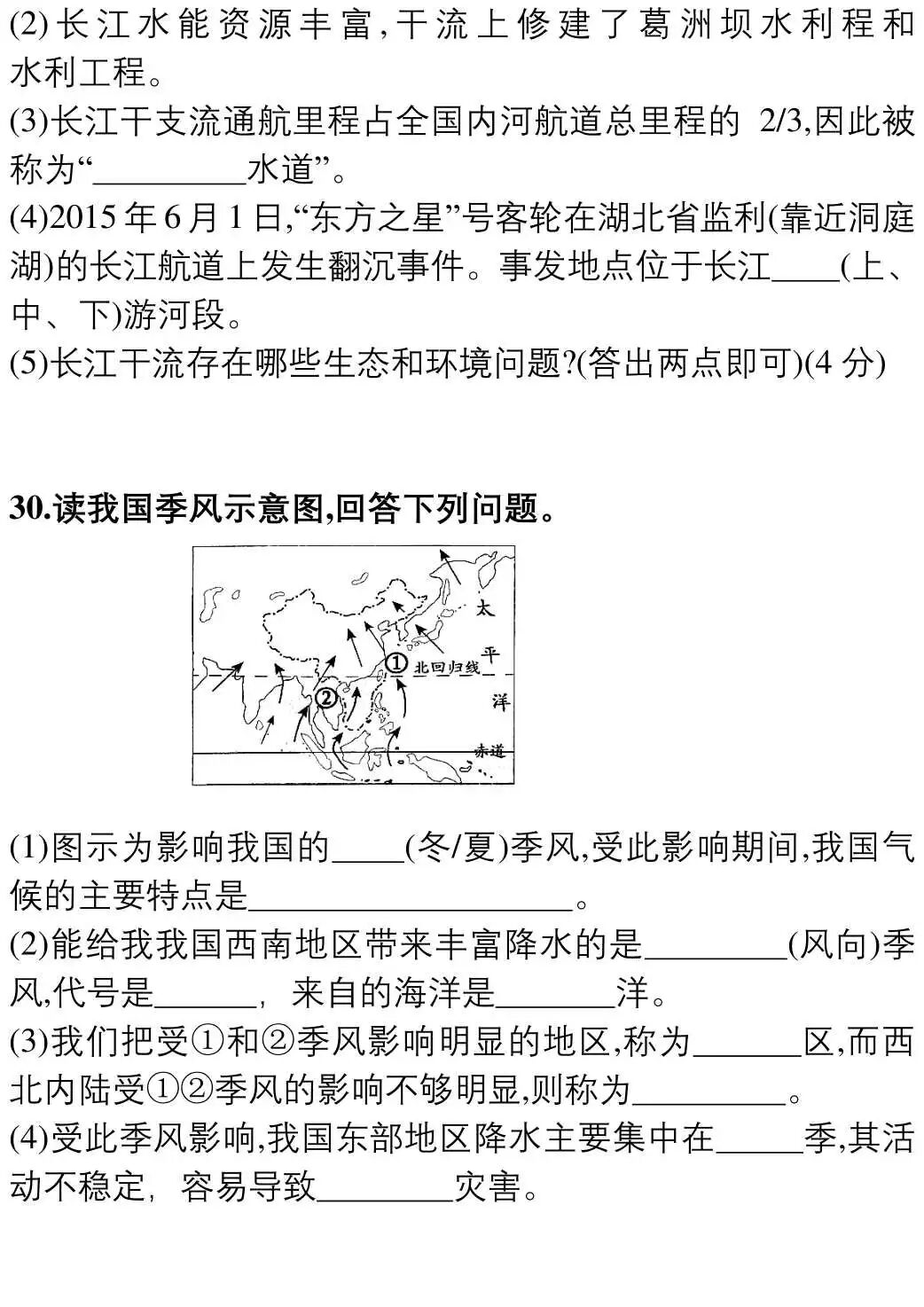 八年级上册地理(人教版)期中测试卷(附答案)