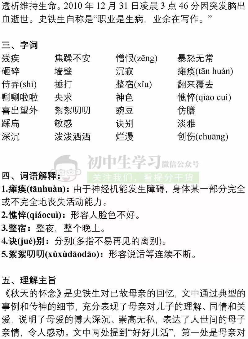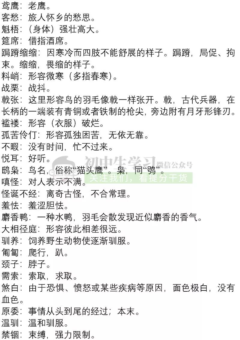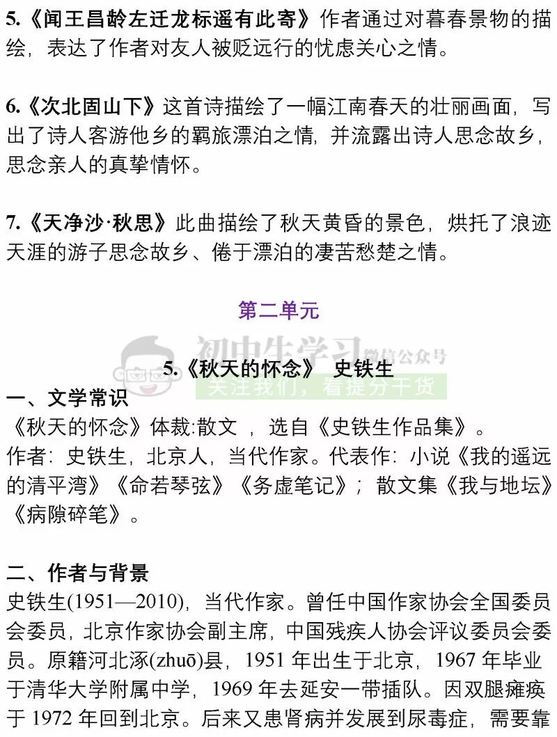 七年级上册语文12月月考重点知识清单!