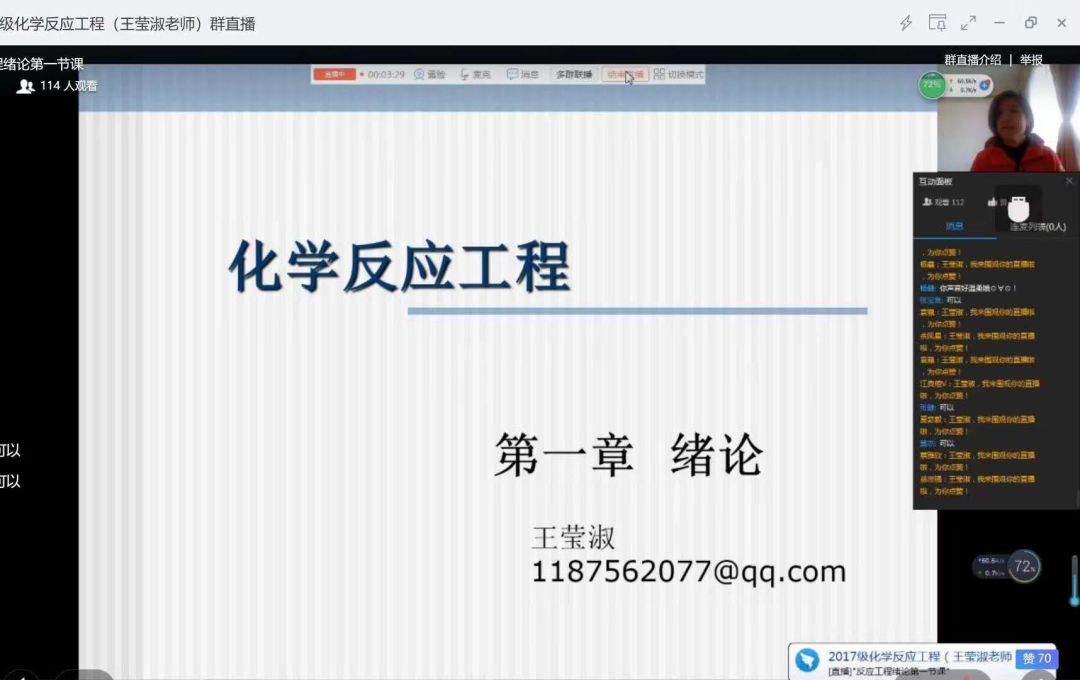 ——授课伊始,王莹淑老师通过这样鼓舞人心的开场白,给大家带来了一次别开生面的《化学反应工程》线上教学体验。