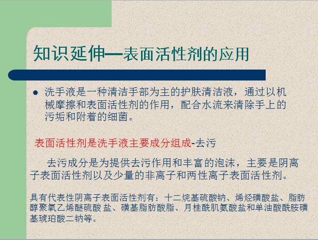2.在授课过程中拓宽相关知识。在讲述乳液聚合等课程内容中涉及到表面活性剂的内容,而表面活性剂等物质在消毒液等产品中被广泛使用。授课时结合当下抗疫工作,适当普及相关内容在抗疫中的应用,为学生拓宽知识面。