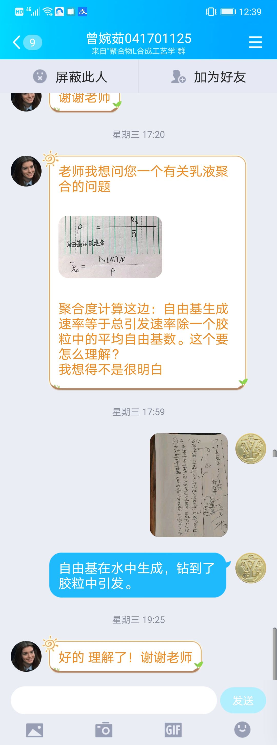 图 袁珮教授通过实时通讯软件与学生互动