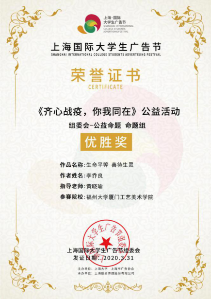 “齐心战疫情、你我同在”公益活动 获奖证书