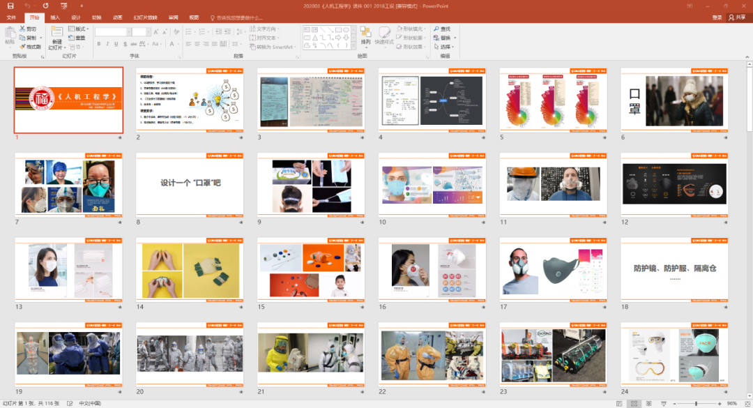《人机工程学》课程导入紧扣当下疫情,先是展示了一组疫病来袭之际医护人员被口罩压伤的面孔,唤起同学们对医护人员的崇敬以及对产品人机的关注;而后又通过一个口罩快题设计,检测同学们发现问题的洞察力和解决问题的应变力,并在点评方案的过程中引导同学们以小见大,无论是小小口罩还是防护服、隔离仓,都要综合考虑使用者、使用环境、使用时长等多方面的需求;紧接还展示了几件同班同学在寒假期间“以艺抗疫”设计作品激励同学们要有主动设计的作为,牢记使命、勇于担当。循循善诱将学生引入“人机工程学”之门,又层层递进让“思想政治”教育更贴近学生、贴近生活。