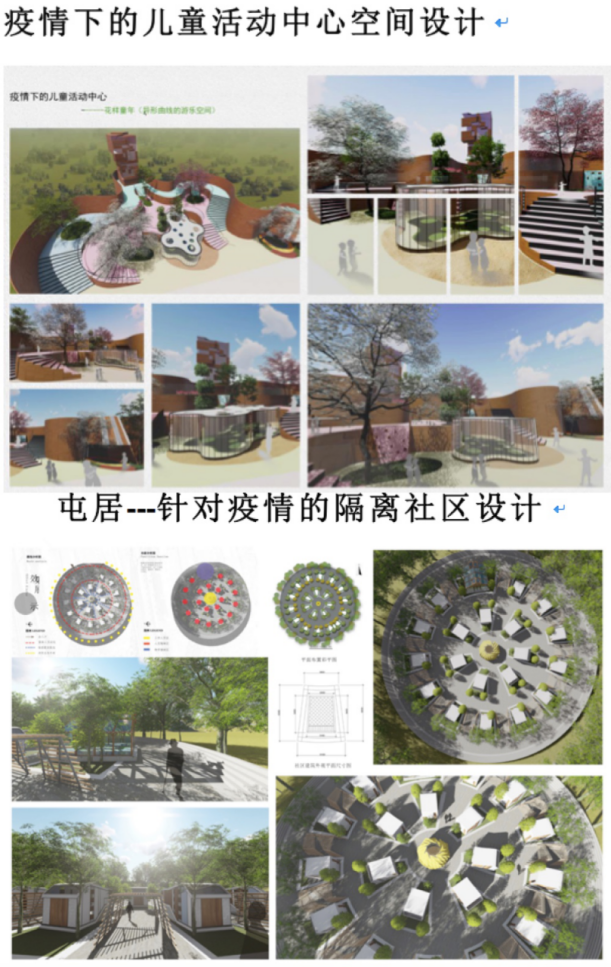 针对本次课程,同学们能够站在环境艺术设计的专业角度,对疫情爆发后引发的种种思考及概念做了较为全面的可行性分析,并进行了相应的主题概念设计,为抗击疫情,应对未来多变的社会与自然环境,进行力所能及的探讨与研究。一方面培养了学生对于环境艺术设计语言表达的整体理解,另一方面能够结合时事与当下社会环境展开自己的思考,创作符合当代精神,从而进一步提升学生的思想政治素养,解决实际问题的能力。