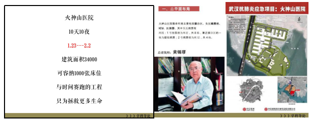 环境设计专业大一学生们的开学第一课意义深远,在《环艺学科导论》的开篇,梁青老师便以火神山医院建设案例引发大家对环境设计学科的思考,结合当下疫情,介绍了积极投身建设的黄锡璆总建筑师和建筑工人们的事迹,详细解读了火神山医院的内部医疗空间环境及传染病房环境的设计特点,希望通过这个“与时间赛跑,只为拯救更多生命”的建设工程案例能让新入专业的学生树立正确的人生观和世界观,坚定服务社会,做有担当,有责任感的设计师。