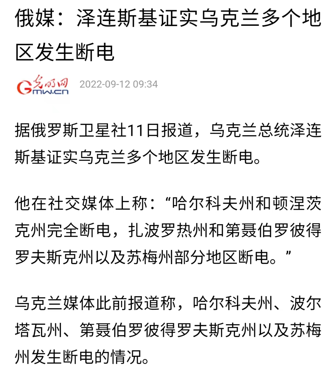 200多天了,俄军打的特别克制,这也不许用、那也不许打,精确制导武器用的非常克制,除了早期现在很少攻击乌克兰腹地,甚至直到这次乌克兰大举突进,俄罗斯才第一次对乌克兰电力系统下手,当地时间11日晚20点,俄军大规模空袭已导致乌克兰至少6个州大规模停电。