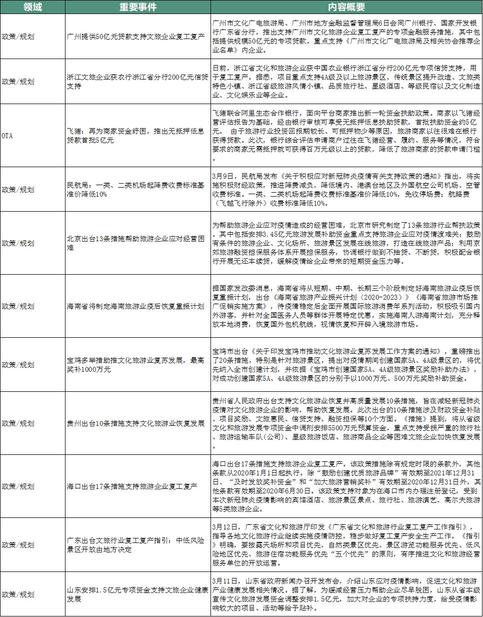 可大致看到,随着疫情逐步得到控制,地方文旅政策方向也逐步由单一的企业纾困向产业的重振发展过渡,新一轮的定向资金奖补与金融信贷支持也在众多省市展开,“政银合作”、优质旅游供给定向奖励也是本周地方支持文旅企业复工复产与行业恢复的动作亮点。