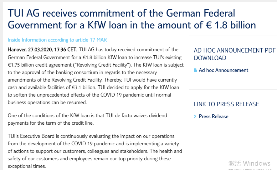 途易CEO Joussen表示,途易的商业模式相当完整,服务超过2100万客户。但现在面临最大的困难是国际旅行限令,这造成公司目前暂时没有产品,也没有收入。这种情况必须得到缓解。