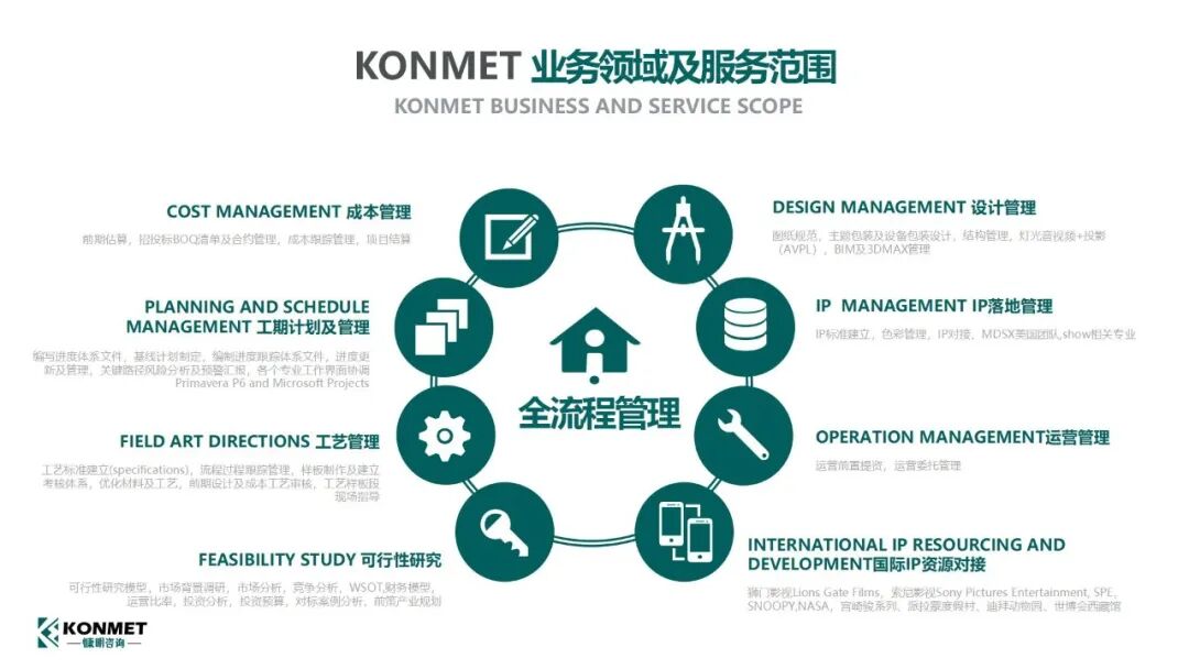 作为一家垂直深耕且技术领先的全过程工程项目管理咨询机构,以成本管控为核心,慷明咨询的业务范围已经涵盖整个主题公园的建设流程,从规划期的可行性研究报告、IP引入到建设期的工期管理、IP落地设计管控和FAD工艺管控,再到覆盖整个项目建设周期的成本管控和国际IP运营管理,能够为文旅项目提供全球资源整合及一站式国际专业管理服务。