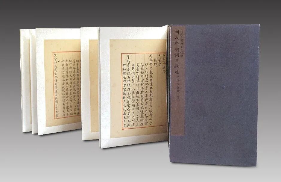 《明永乐朝词臣献颂》内府抄本,纸本,横28厘米,纵45厘米,经折装,四周双边,朱丝栏,是明永乐十五年(1417年)翰林院学士杨荣进呈给永乐帝的关于始建紫禁城这一标志性重大事件的颂词。❖《明永乐朝词臣献颂》