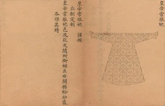 嘉庆四年(1799年)七月十一日,四执库总管张进忠等传嘉庆帝口谕,做上用广葛长衿袍2件、衫2件、白漳纱衫10件、套裤4副,为此需用单料葛8匹,其它上用纱、素缎、素纺丝、硬纱、罗、高丽布等各色衣料以及银钮、花钮数量不等。嘉庆十二年,做上用葛纱长衿袍2件,嘉庆十四年,做上用米色葛纱长衿袍2件、大衫2件、蓝葛纱长衿袍4件、兼丝葛长衿袍2件。道光二十七年,传旨成做上用酱色葛纱袍2件、酱色葛纱衫2件。次年,又做上用酱色葛纱袍2件、酱色葛纱衫2件、米色葛纱袍2件、米色葛纱衫2件、驼色葛纱袍1件、驼色葛纱衫1件、灰色葛纱长衿袍2件、灰色葛纱衫2件同治三年(1862年)九月,广储司衣库陆续交出上用葛纱袍4件、灰色1件、驼色1件、米色2件。同治十三年十二月,宫中为刚刚即位的年幼的光绪帝一次性就定制了上用葛纱袍13件、葛纱衫8件,于次年夏天的五月至八月陆续做好交出。次年的六月又增加了葛纱袍6件、葛纱衫4件。为宫中制衣的是内务府广储司衣库的听差妇人,同治三年时有6名,每人每天工作定量是40工,每工照例能得工饭钱大制钱25文。❖《皇朝礼器图式》中的皇帝常服袍