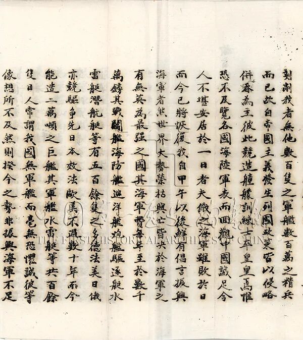 王府及宫廷事务:包括醇亲王府及宫廷、陵寝、小朝廷相关档案,如宣统年间修建第三座醇王府的工程图、文件;优待清室退位条件;1924年冯玉祥逐溥仪出宫后清宗室及遗老载洵、载涛、陈宝琛、柯劭忞等吁请张作霖维护皇室安全的各种函稿;1919年、1921年清理皇产等档案。清末新政:主要是光绪朝的变法、立宪、选举相关档案,如光绪三十三年京内外官员及各省举人、御史、同知等关于立宪的条陈等档案。❖ 光绪三十三年八月清廷议行立宪京内外官吏暨各省举人等应诏陈言改革时政折印本册(局部)政务:包括各省奏呈本章,以及职官、灾赈、河工、矿务、铁路方面档案,如调补府厅州县及武职各员批本,提镇、城守尉、司、道、知府年终密考批本,禁烟、雨雪粮价、收成分数、灾害等情况批本;吉林将军希元陈报卸任启程进京日期的禀启;军机处官员转送谕旨请醇亲王修改案;章京定安禀复奉天省水灾及赈济情形;关于郑州河防工程禀启;大学士徐桐、庆亲王奕劻等请缓办津通铁路等档案。财务:包括经费、铸钱、捐税相关档案,如帮总办阿麟等陈报户部抢领库银及经收报捐款项禀启;吉林将军长顺关于革除兑钱之弊,请停铸制钱禀启;粤海关光绪二十八年征收常税、货税各数目等档案。军务:办理各省军务、整饬军备、调动布防、校阅操演、购买洋枪洋炮等内容档案,以及神机营、禁卫军、海军相关档案。版权声明:本号文章、档案插图、音视频等版权均归“皇史宬”公众号(ID:mingqingdangan)所有,未经授权禁止转载!但欢迎读者朋友们转发分享!
