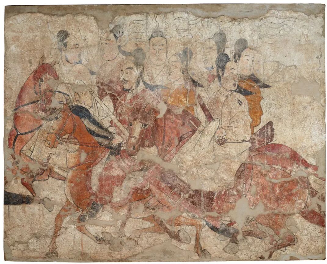 娄睿墓壁画栩栩如生,神采飞扬,特别是画面中的200多匹马,动态多样,无一重复——非常有意思的一个小细节是:画家将马受惊拉屎的场景都入画了。