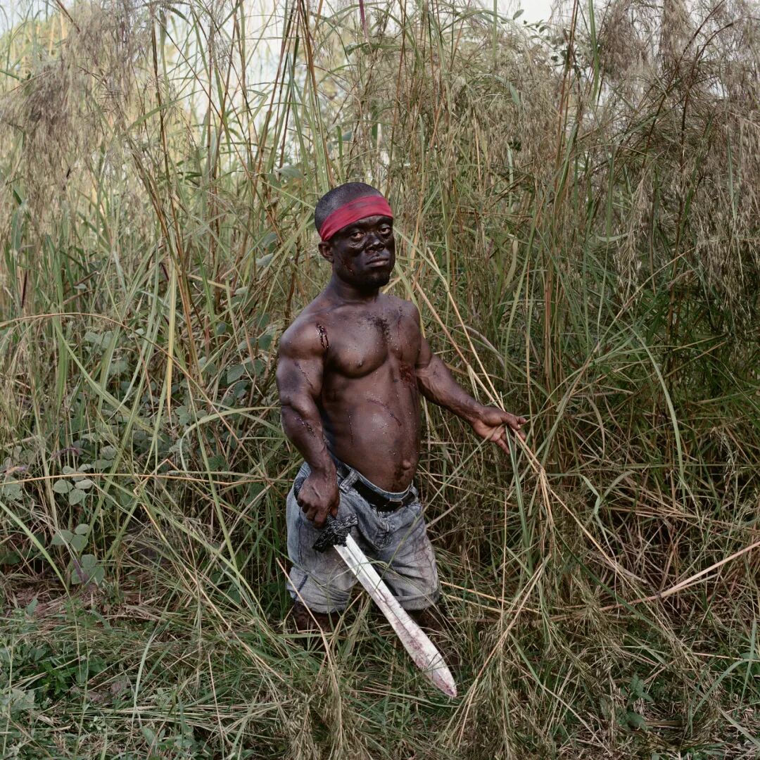 2007年,他发表了自己最负盛名的系列作品《鬣狗和其他男人》。牵着非洲鬣狗——一种胆敢围攻并杀死狮子的猛兽的那些男人不仅卖艺谋生,也充当收债人的角色(面对他们试问谁敢不还钱?)。那是尼日利亚的奇观,也是非洲粗粝底色的另一种见证。