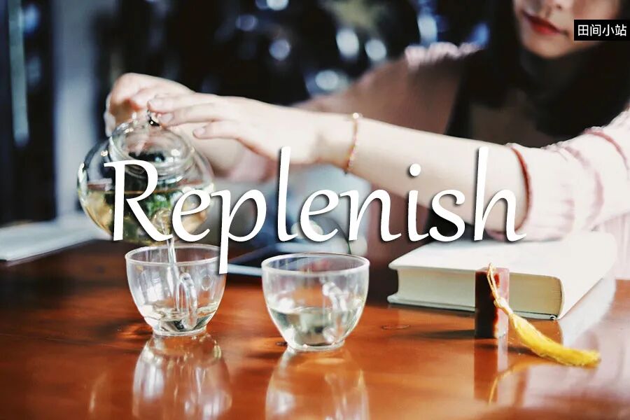 Replenish 一词源自拉丁语 plenus (满的),由前缀 re- (重新)+词根 plen (满的)+后缀 -ish (做……、使……)构成,其基本含义即“重新装满、补充”酒水、食物、燃料等消耗物,比如:- 现在局势仍不太稳定,我们需要尽快补充食物和水。