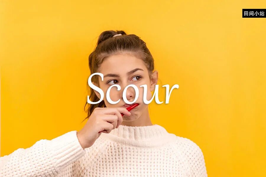 基本释义 [verb] clean or brighten the surface of (something) by rubbing it hard, typically with an abrasive or detergent [动词] 通过用力摩擦(某物)表面来使其清洁或光亮,通常搭配研磨料或洗涤剂